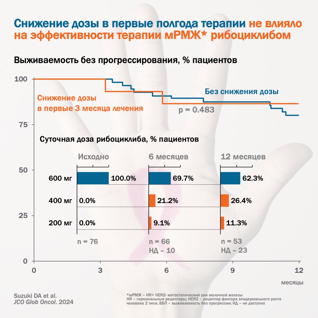 Suzuki DA et al. Real-World Evidence of Ribociclib Plus Aromatase Inhibitors as First-Line Treatment in Advanced Breast Cancer: The BrasiLEEira Study. JCO Glob Oncol. 2024 Apr:10:e2300484. doi:10.1200/GO.23.00484